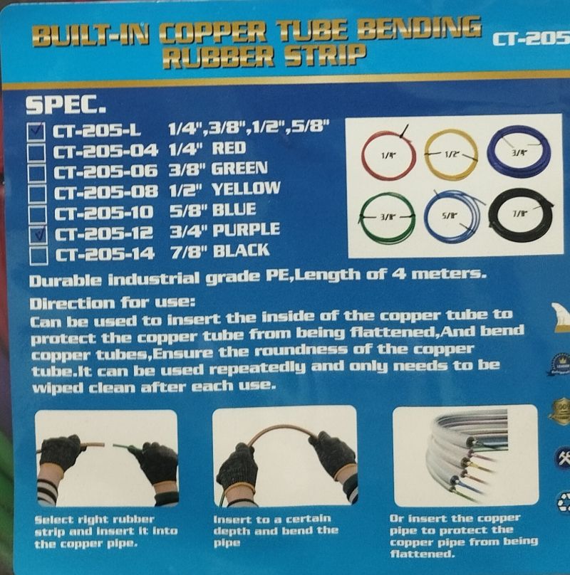 Огъвач - пластмасови жила комплект за изолирани медни тръби - 1/4; 3/8; 1/2; 5/8 3/4 inch